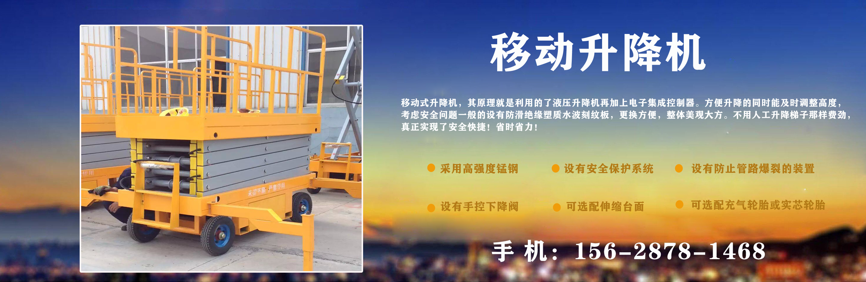 濟(jì)南中升機(jī)械制造有限公司主營(yíng)移動(dòng)升降機(jī),小型移動(dòng)升降機(jī),移動(dòng)式升降機(jī),移動(dòng)剪叉升降機(jī),移動(dòng)剪叉式升降機(jī)等產(chǎn)品,信譽(yù)良好,歡迎前來(lái)咨詢訂購(gòu)! 在銷售上,尊重每一個(gè)客戶,做到保質(zhì)、保量及時(shí)供貨;在售后服務(wù)上,以較短的時(shí)間,用較快的速度解決,終身追蹤服務(wù)?! 」臼冀K以“品質(zhì)為本,服務(wù)至上”為公司宗旨。致力于提供高品質(zhì)的產(chǎn)品,完善的服務(wù),快捷的供貨,無(wú)論您身處何方,都能感受到我們的優(yōu)良服務(wù)??蛻糁辽希\(chéng)信為本?! g迎各界朋友來(lái)電,來(lái)函垂詢,選購(gòu)!...